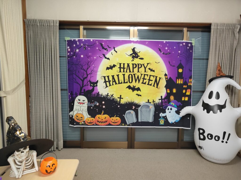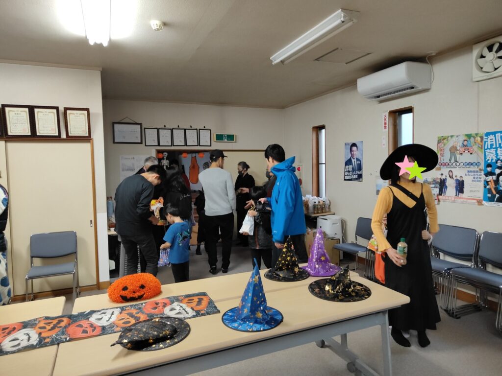 2025年10月26日 自治会館にてハロウィンイベントを行い,お子さんにお菓子を配りました。